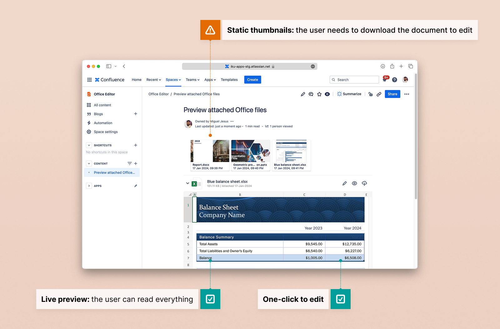 Team Files is for knowledge workers in Jira and Confluence, including software teams, support, marketing, operations, and others. The main problem was clear: once someone attached a document to an issue or page, collaboration became a cycle of downloading, editing, and re-uploading, leading to duplicates and version confusion.